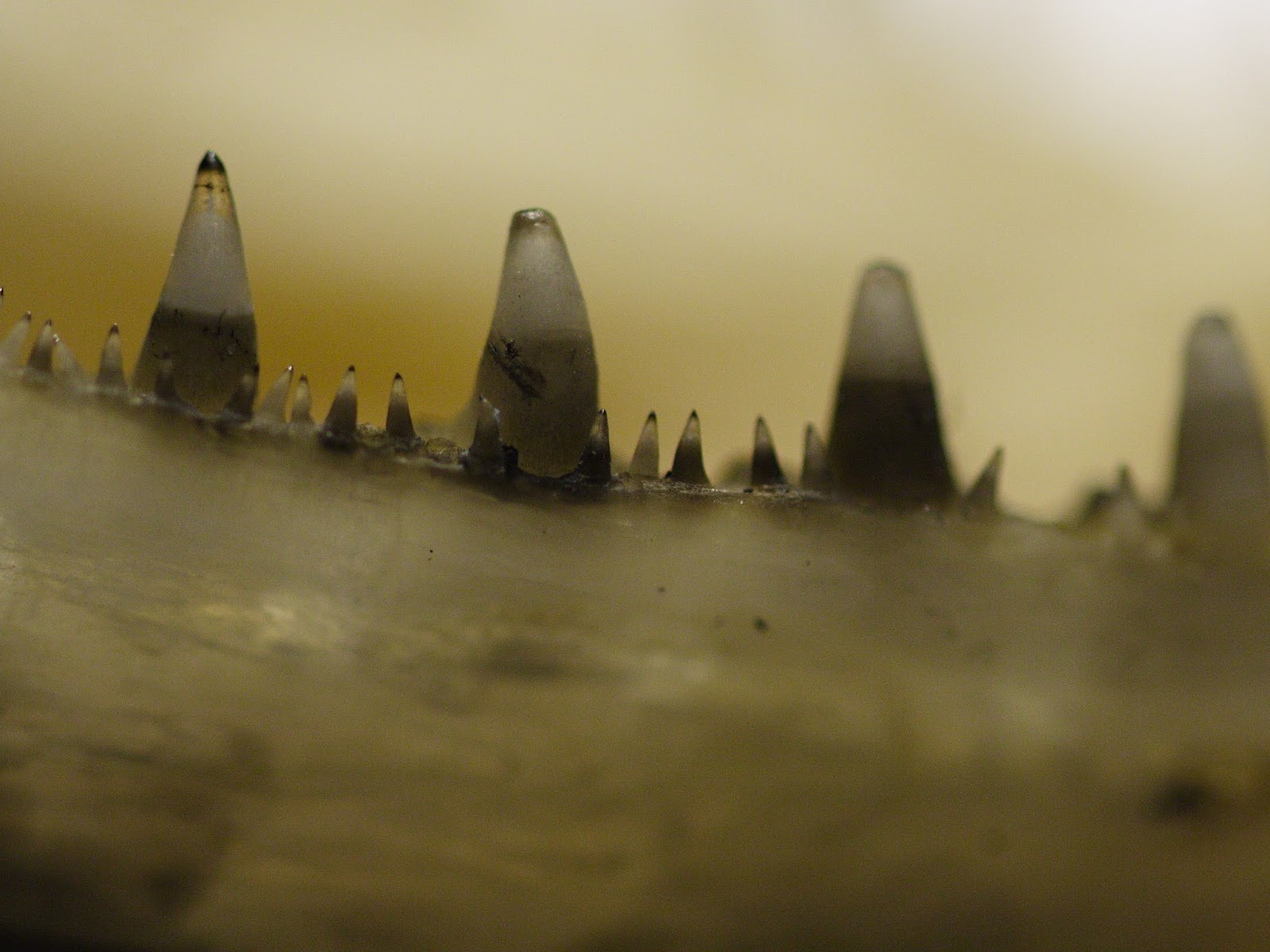 Tussen de grote tanden zitten hele fijne kleine tandjes.