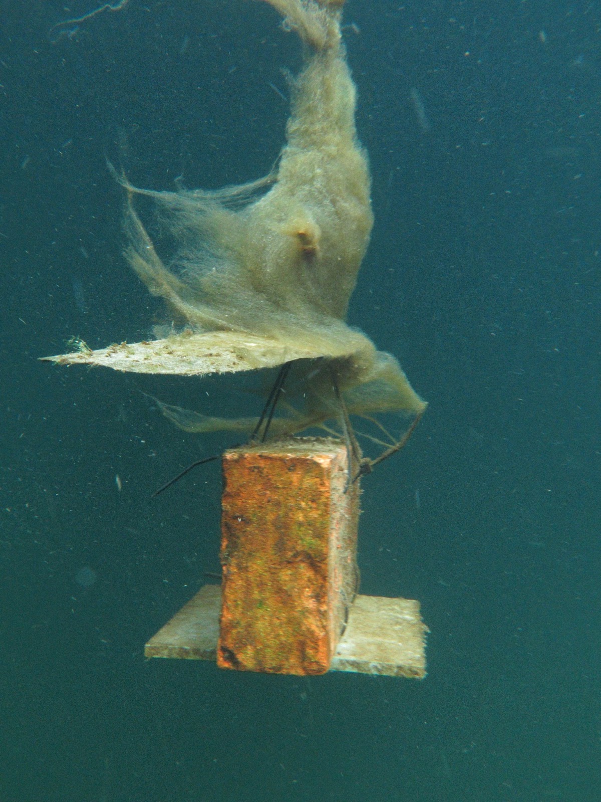 Wat mij ook direct opvalt is een bruine aanslag op de bodem en als we aankomen bij de SETL platen dan zie ik lange plukken lichtgeel-bruine alg hangen en wat ook apart is dat er alleen op SETL H106 een purperkleurige blauwalg huist.