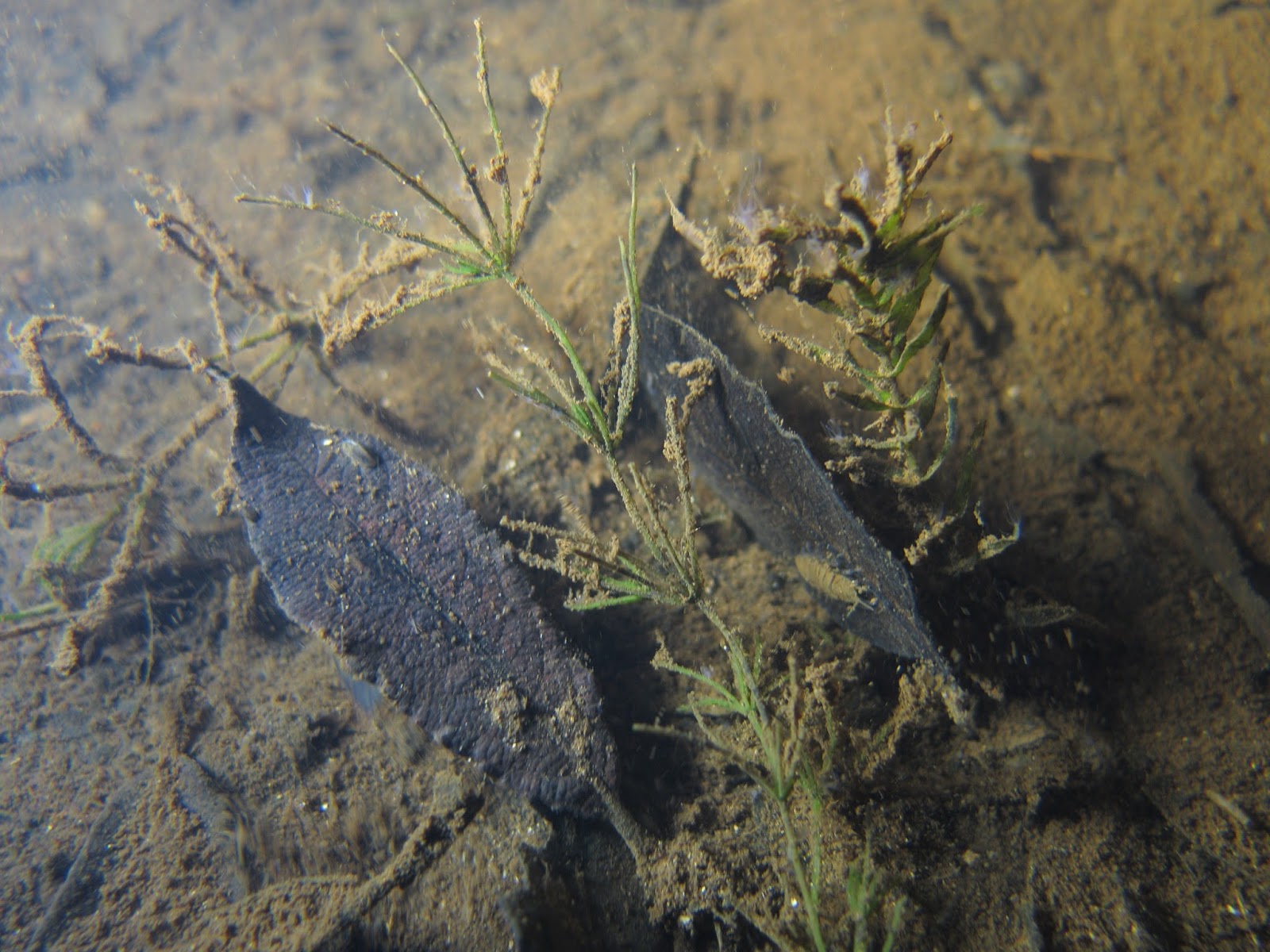 Op de foto hieronder zie je op het rechtse grote boomblad een waterpissebed zitten. Welke soort kranswier dit zou kunnen zijn weet ik niet, maar bijzonder is het wel.