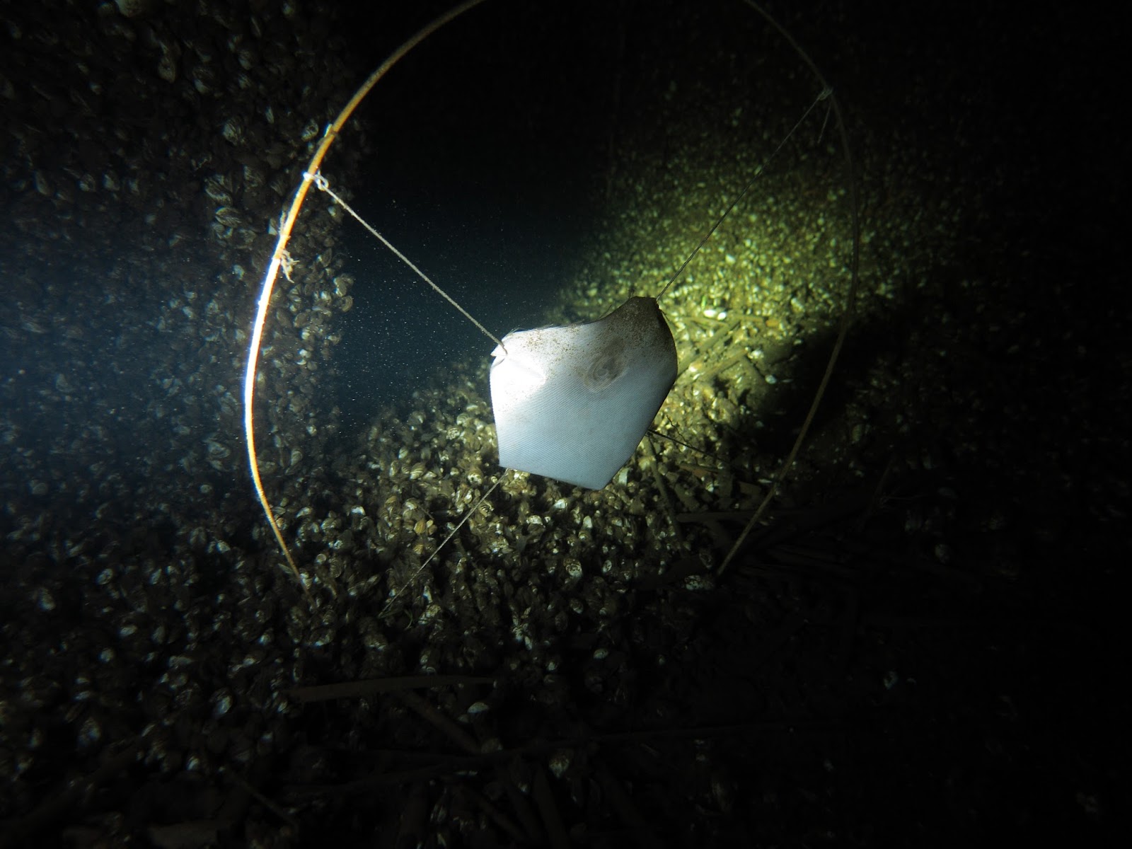 Na de metingen zijn we richting ZW gezwommen. Het ligt er allemaal wat doods bij.
