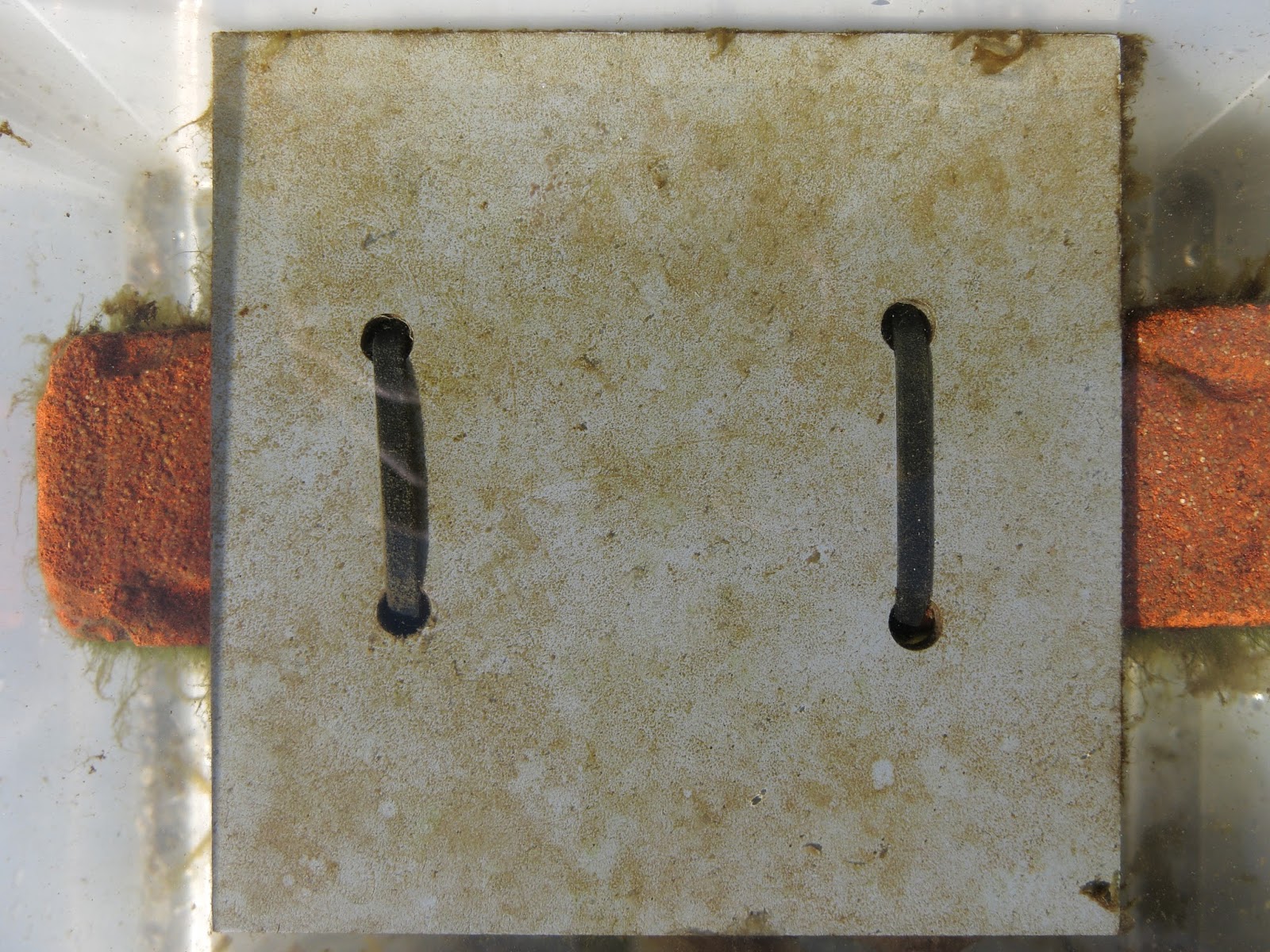 De platen zijn slechts begroeid met een beetje aanslag, maar geen mosselen of iets dergelijks. Thuis schraap ik wat aanslag van SETL H128 en ik leg het onder de microscoop.