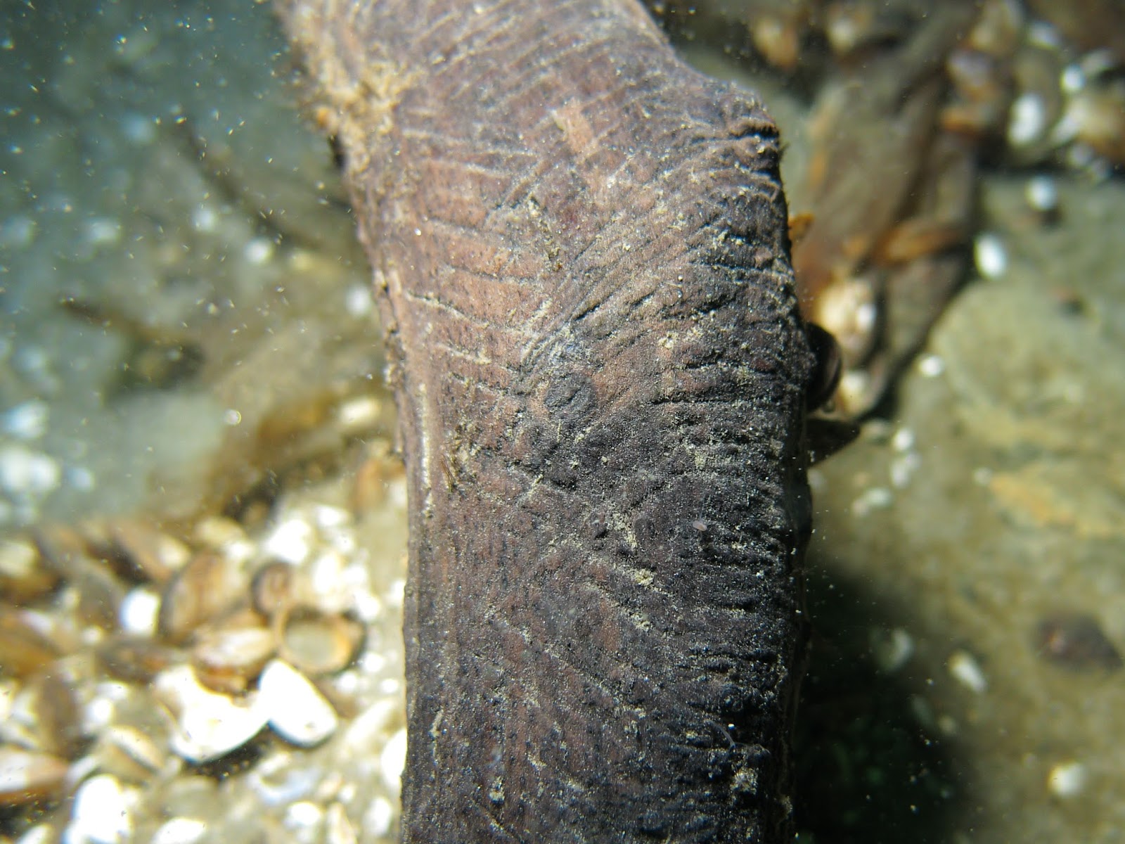 Langs de puinwand en we ronden de zuidelijke uitstulping waarna we bij het veld met bruine geleibolletjes komen. Op sommige plekken is het 20-30 cm dik en een paling ligt rustig, maar gaat er al snel vandoor.