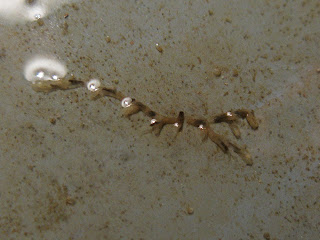 Wat wel heel bijzonder is zijn de een soort eierstrengen welke zich op de SETL platen hebben afgezet. Ik dacht eerst dat het hydroïdpoliepen waren, maar nu twijfel ik wat het is.Ik vermoed dat het de statoblasten zijn van een mosdiertje soort Plumatella. De structuur komt overeen met wat ik kan vinden op internet.