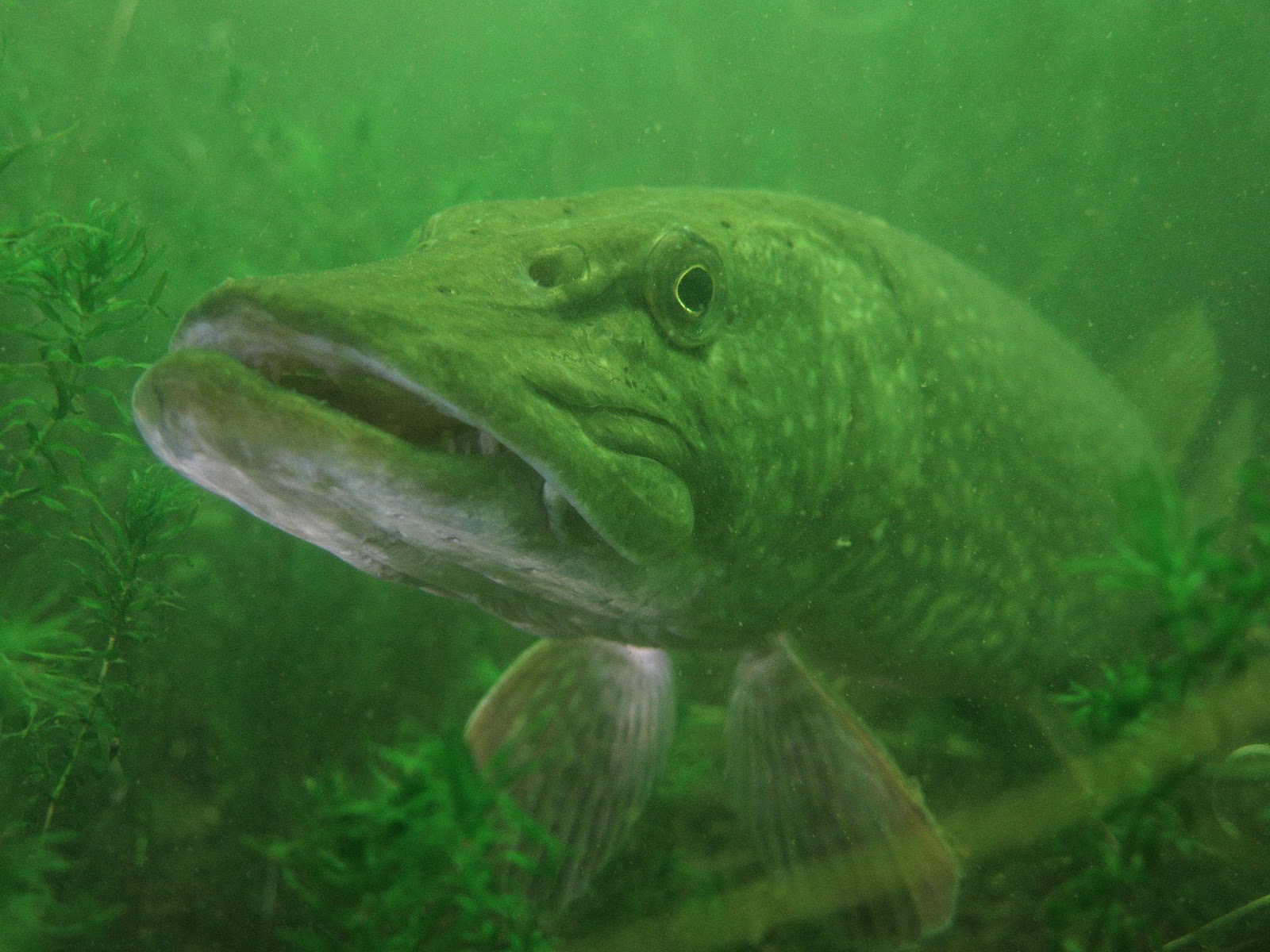 Er ligt een enorme snoek waar Jorn foto’s van maakt. Het ligt daar rustig en blijft ook rustig liggen. Daarna zien we nog een snoek en weg zwemmende karper.