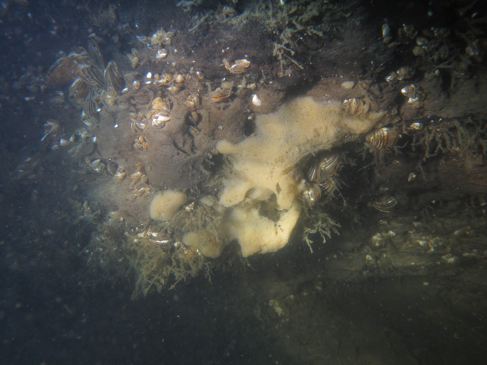 Die zelfde spons is twee maanden later ondanks de blauwalg uitbraak redelijk stabiel bij een temperatuur van 19 Celsius.
