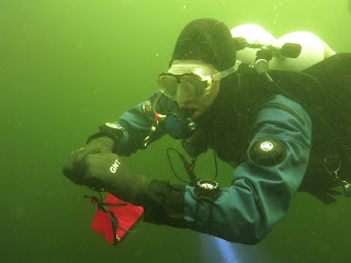 Ik ga beginnen met de valve drill. Tja en voor ik begin vraag ik Walther of ie wat wil zakken. Verrek ik ben gedaald naar 6 meter. Lekker bijdehand ben ik ook hè.