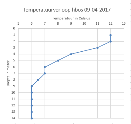 We zitten op 5 meter diepte net onder de spronglaag.