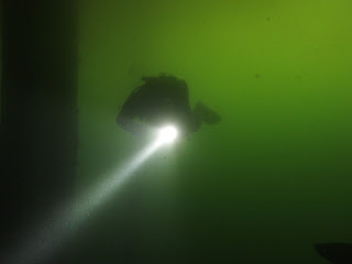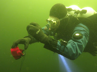 Het is weinig succesvol om de ondiepte op te zoeken en ik bedenk mij dat het wel leuk is om een opstijging te doen vanaf een meter of 15 en dan meter voor meter de temperaturen te noteren in mijn wetnotes oftewel een nat notitieblokje.