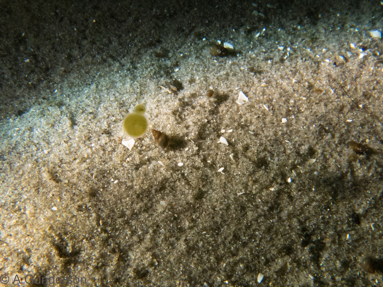 Bart, Robin en ik zwemmen naar het Paviljoen en ik maak lukraak wat foto’s van de bodem, en ook van een spons op één van de paviljoen palen. Ik kan je vertellen dat op het oog onbenullige foto’s weer dingen aan het licht brengen die mij anders domweg waren ontgaan. Onbenullige foto’s kun je bij thuiskomst natuurlijk altijd nog weggooien.