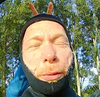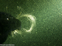 Ik duw mijn cameraatje onderwater voor het nageslacht. Met het hoofd onderwater is net erwtensoep met groene snotjes.