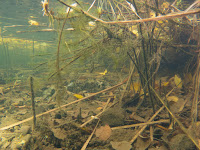 Het is genieten van alle visjes en dingetjes. Robin ruimt nog wat vislijn en ik film de rietkraag waar veel jonge baarsjes voor zwemmen.