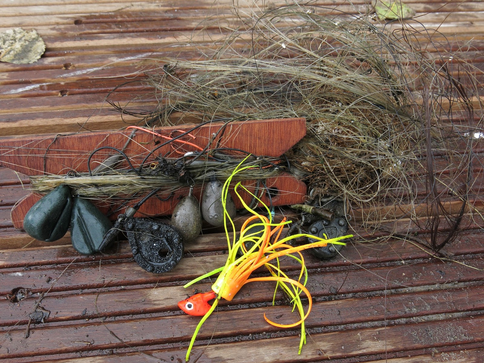 | Oogst van 19-10-2014. 790 gram lood en meters lijn. |